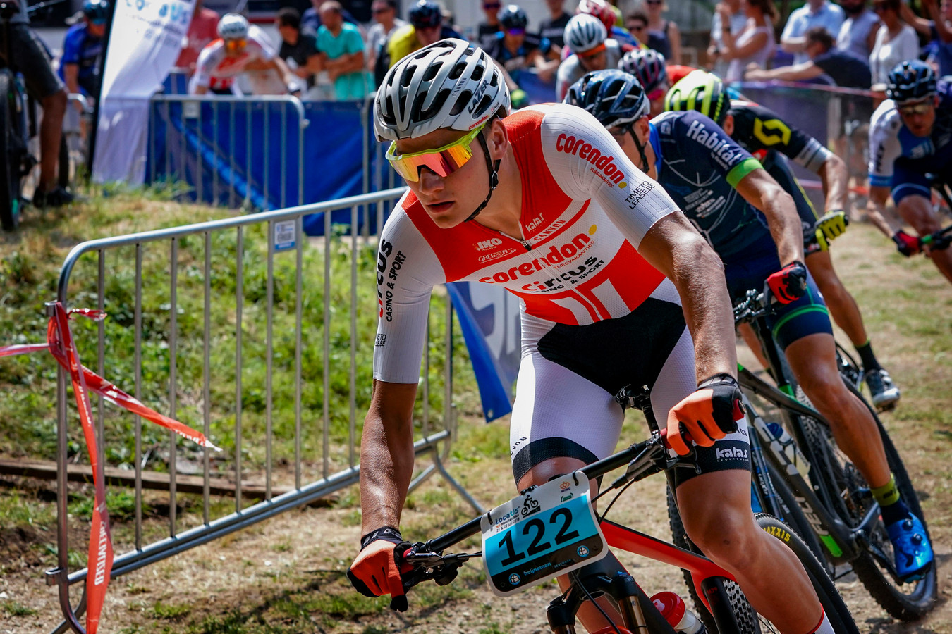 Mathieu van der poel rijdt wegrit op europese spelen.